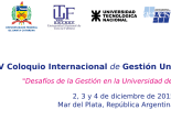 Tenemos el agrado de invitarlo a participar del XV Coloquio Internacional de Gestión Universitaria, CIGU 2015, a realizarse en la ciudad de Mar del Plata, Provincia de Buenos Aires, República … Sigue leyendo